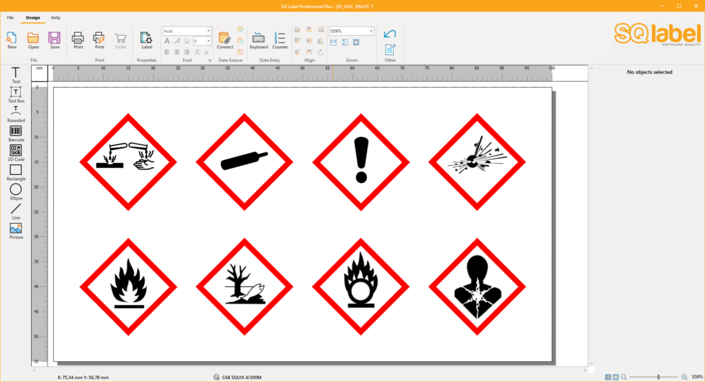 SQ Label is professional labeling software designed for creating compliant chemical and industrial labels. It’s integrated Clipart Gallery provides instant access to all standardized hazard symbols defined by the Globally Harmonized System, eliminating the need to search for sources of external graphics.